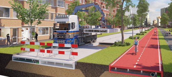 除了提供废塑料解决方案之外,PlasticRoad还可以以更快的速度修建道路,减少对周围环境的影响并减少二氧化碳排放。预制的模块化部件使这成为可能。中空结构提供了一种解决方案,可在大量降雨时改善排水性能。